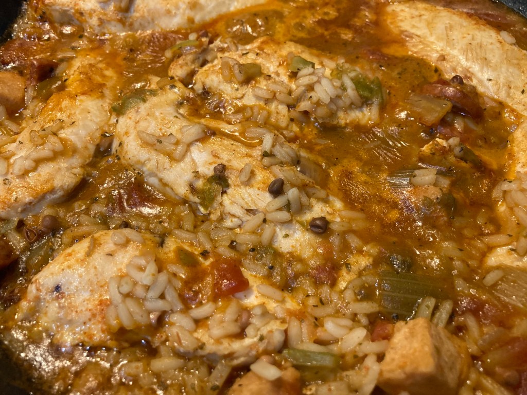 I also have some chicken breast tenders simmering in canned spicy gumbo on the stove. Added some cayenne pepper and salt to the chicken for a bit of extra kick.