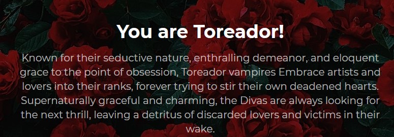 Also, I happened upon an older pic of me that looks super vampy!!! And I took the Vampire the Masquerade personality test to find out which clan I would belong to.