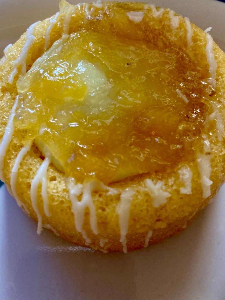 Here’s the cake, though a bit of the pineapple goodness fell off in the itty bitty pastry bag on the way home.