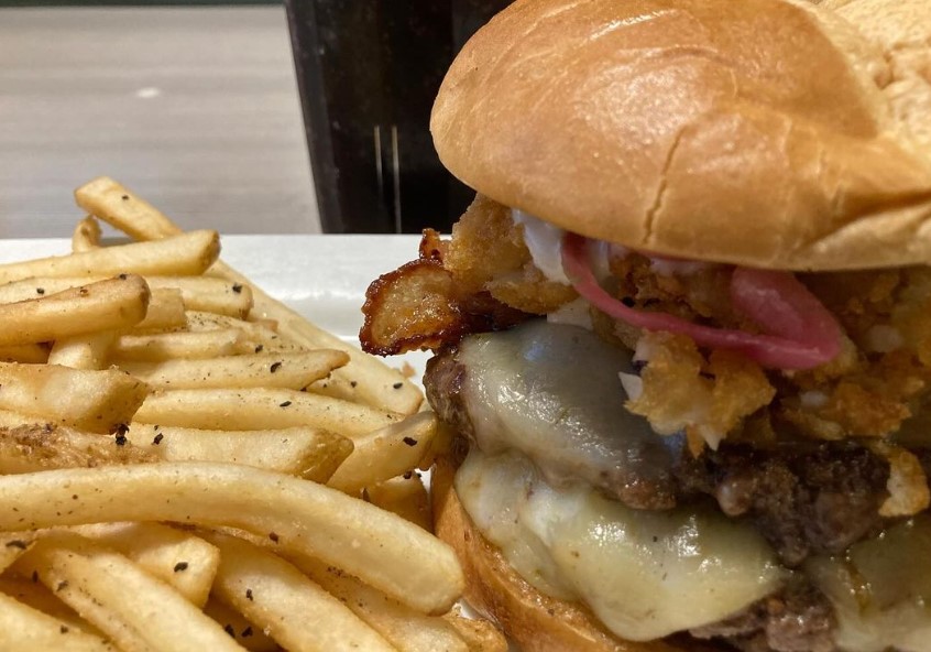 Took myself out for a burger. I was waffling between a couple different restaurants but then nipped into Uber Eats to see what was on the menu lately at one of them and realized I had almost forgotten about the massive double decker burgers they had just introduced. I’d gotten an email at some point.