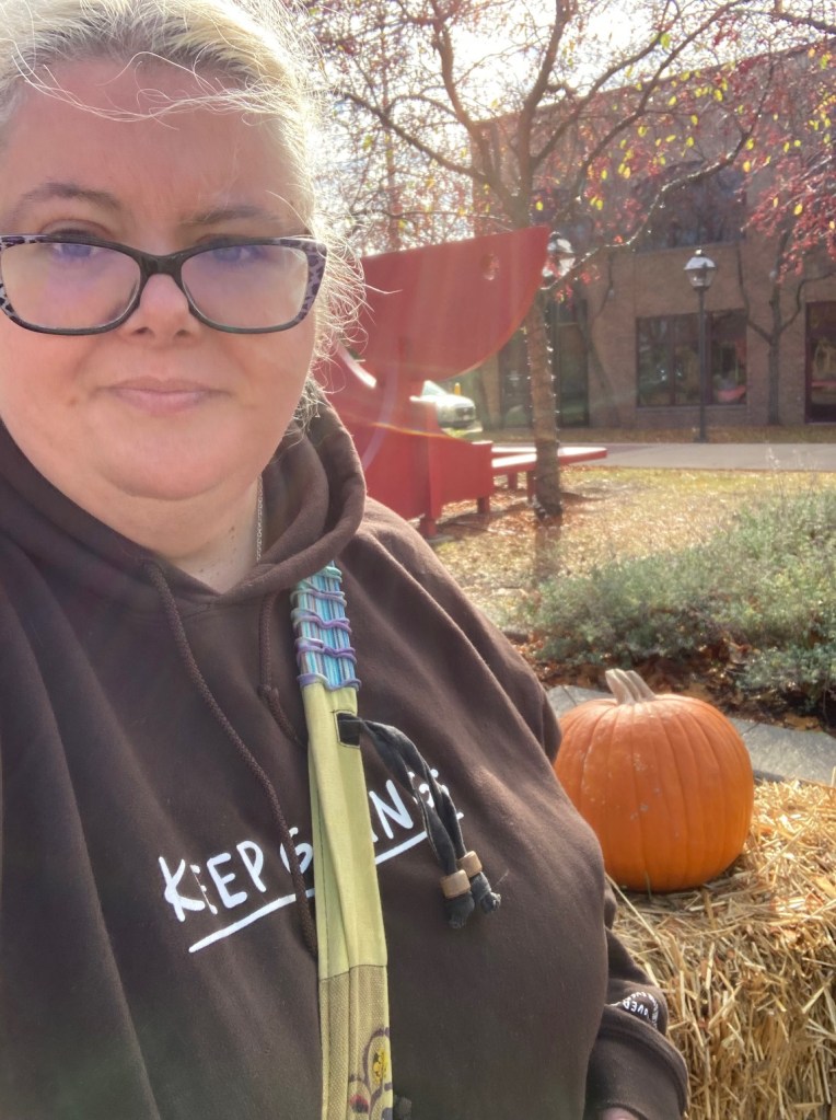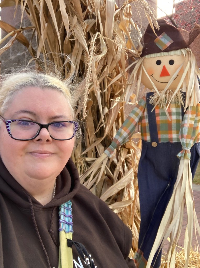 While I was downtown, I took a couple selfies with some remaining fall decor I saw in like a little town square area.