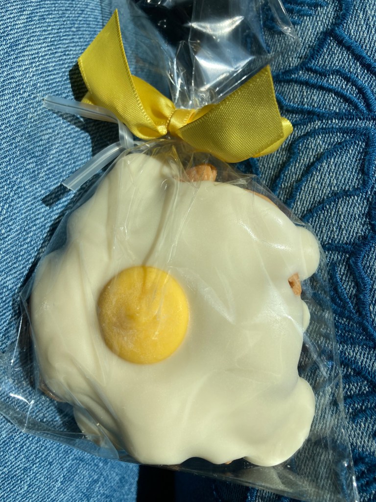 HOWEVER, we did all stop at Seroogy’s yesterday, and my dad offered to buy me something. I had seen these adorable “Sunny Side Up Cashew Snappers” on a previous visit and found them utterly delightful. So, I chose one of those. The white chocolate was SO SO sweet! But it was very good.