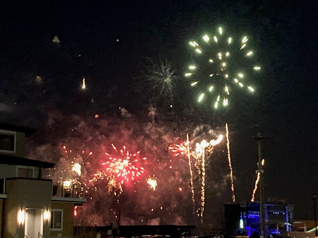 On our way out of the restaurant/pub, we caught a fireworks show, just at the right time. Not to diminish the impact fireworks have on former military members, and animals, and such… but I had a really outlandish thought tonight.