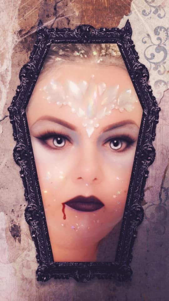 Lil Snapchat fun, from the year I was the Winter Fairy, for Halloween. The gems I wore on my forehead, and the hints of glitter gel, really worked well with this particular filter. Even if David the vampire might object to any sparkly creatures of the night. I still think it looks pretty!