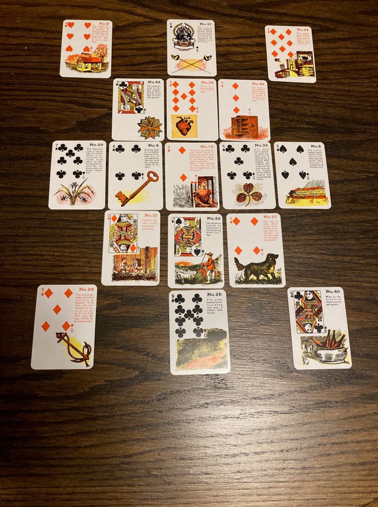 Some of the cards along the outer edges were unlucky ones. We’ll see if that all plays out in the fullness of time. The ones along the outer rim in relation to the querent card, are less impactful, and less immediate.