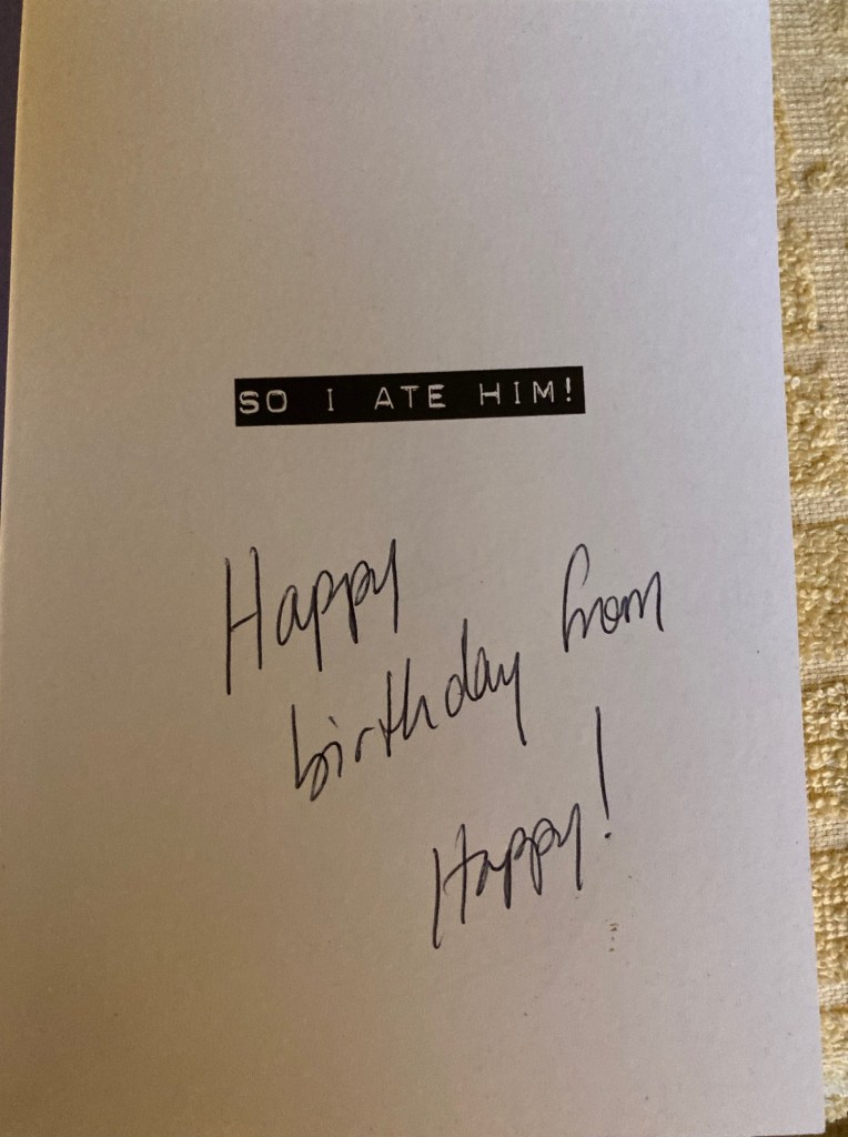 I had a coupon for a free Shoebox greeting card, so I got him a spare, from the cat. He liked that one a lot, too.