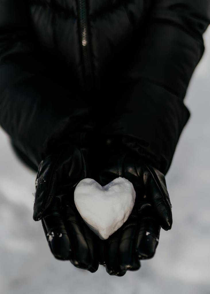 Straddles the line between romantic and vaguely kinky. Is that heart made out of snow? Might be, in which case, the gloves could be more for warmth than anything else. But all the black. Assuming it’s not a grayscale photo. It doesn’t look like one, I don’t think?