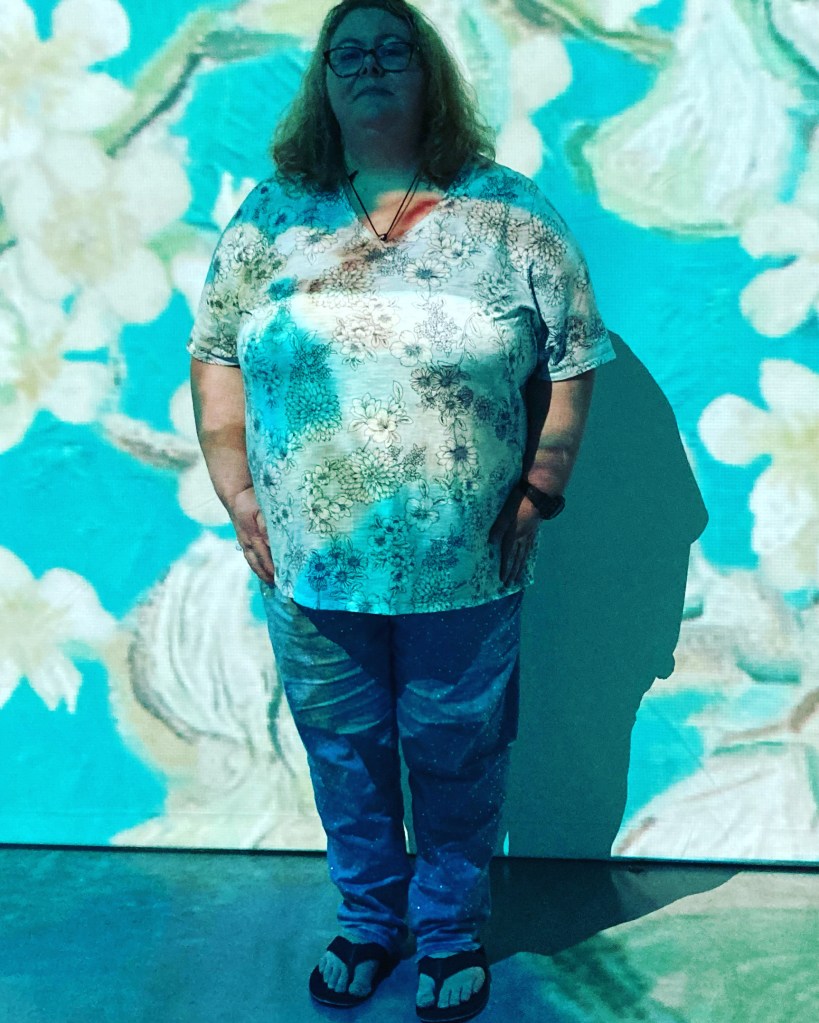 So here I am at Beyond Van Gogh. I also have a great pic with my mom, of the two of us within a suspended frame, with Van Gogh-stylized stuff in the background. This one, my mom took with my phone, while we were within the exhibit.