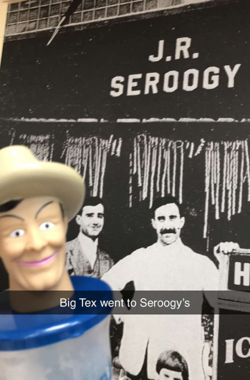 Reminiscing over kiddo’s first job. We had to cruise through there. And Big Tex had to lord it over all the other reusable bottles, that don’t feature iconic cowboys.