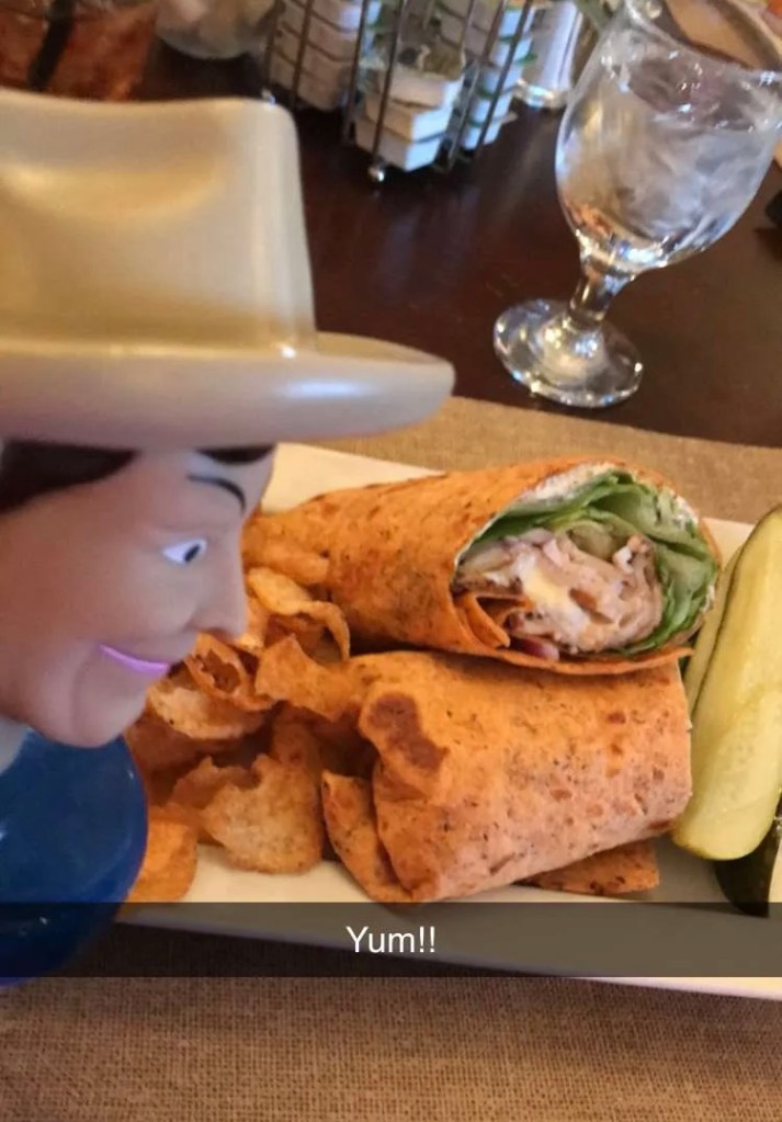But in THIS photo, you can see Big Tex assessing her favorite wrap. I have promised this next time, we will get her there ASAP. She’ll be coming in after 10 PM, so we can’t head there right after the airport. Breakfast or lunch the day after, perhaps. Their breakfasts are really good, too, but I think her fave wrap is likely only on the lunch menu.