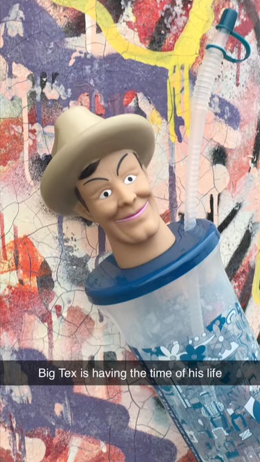 As a reminder, assuming you may not have seen my earlier post about it… she picked up a refillable Big Tex cup in Texas, at I think a major college football game? Or a fair? I will have to ask again. And she thought it would be funny to bring it with and have Tex tour the town.