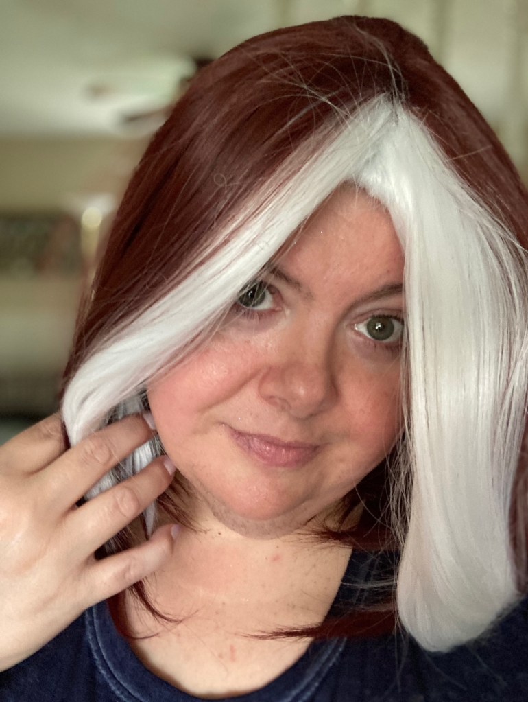 Last but not least, my X-Men: Evolution-era Rogue wig, which I will be pairing with some kinda punky/gothy look. If the stuff I already ordered is decent, I MAY end up replicating her outfit from the animated series fairly faithfully. Otherwise, I may have to get a little creative. I have a t-shirt that while not as clingy or sexy as her wardrobe, still seems to fit her vibe; however, it was oversized even when I was a 4X. BUT… we will see.