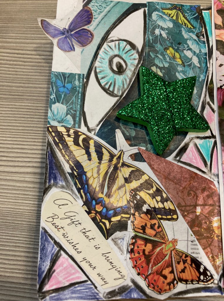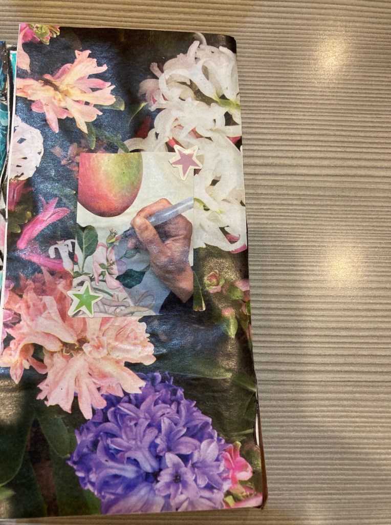 The highlight for ME of this part of the day, was making a “zine.” Maybe if I would have made it at home, there would have been original poetry included. I suppose I could still tweak it? But it feels done. My mom was pretty impressed with how it turned out. I’ll show you the pics I took of each page.