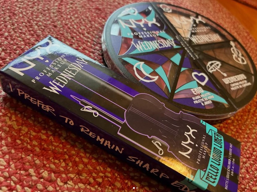 And Enid blushes, and a Wednesday contouring kit. So I will have to learn contouring LOL. Before we got it all home, I thought they were both eyeshadow palettes.